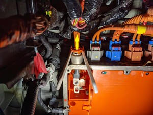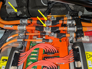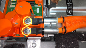NoteMake sure to wear PPE (HV gloves, safety glasses) when working on high voltage component, Measure B+ to Ground, B- to Ground, B+ to B-, If voltage is greater than 10V, Pack contactors are not open or welded, Stop work and reach out to Service Engineering