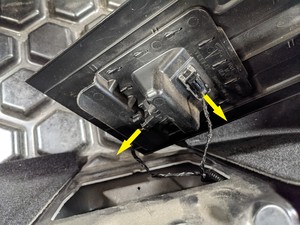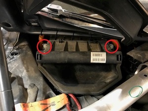 Note2x bolts, 10mm, 4 Nm, Open cover to access bolts, Use plastic trim tools to release connector while applying upward force