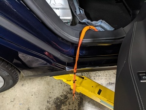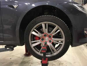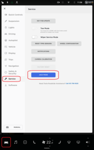 NoteLower rack arms fully and remove them from under vehicle, Remove air suspension from "Jack Mode" via Controls > Service > '' JACK MODE''