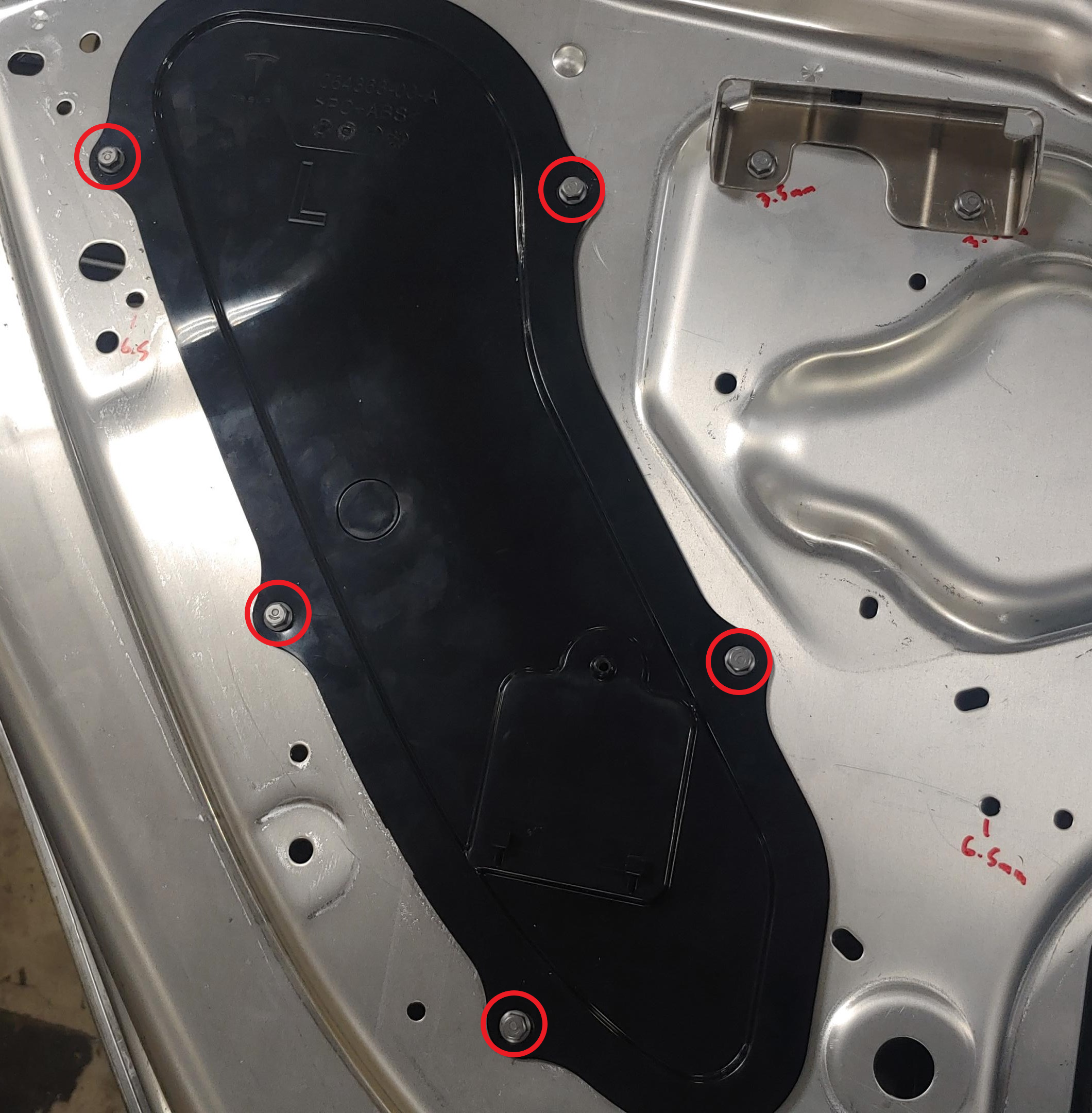 Create new threads (x5), and then install new bolts (x5) for the door panel