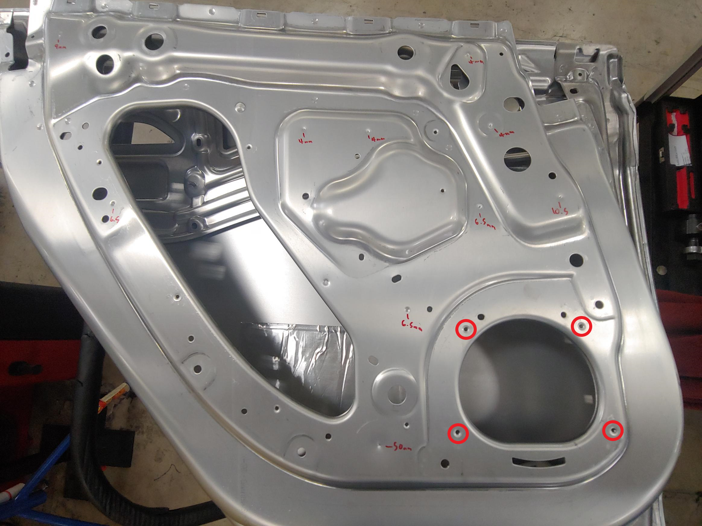 - Drill four 3.5mm holes for the door panel brackets as shown.