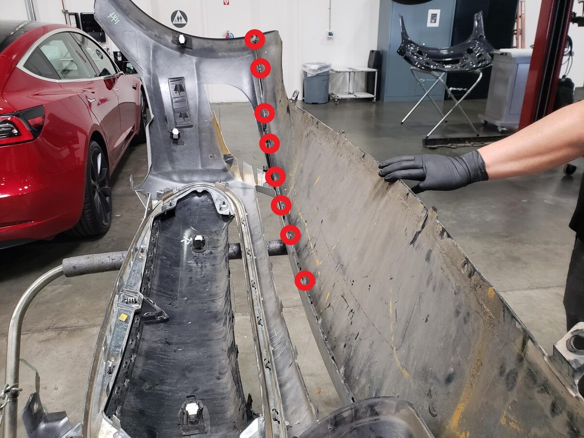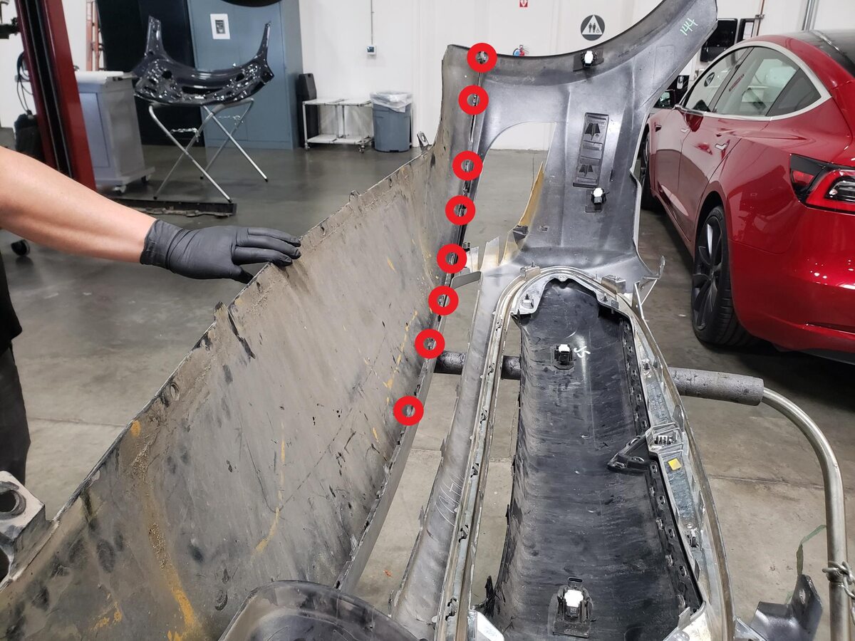 - Place a new front fascia assembly on the padded workbench.