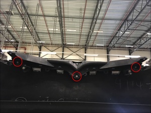 - Release the tabs (x16) and remove the bolts (x4) (torque 3 Nm) that attach the front diffuser to the front fascia assembly, and then remove the diffuser from the fascia.