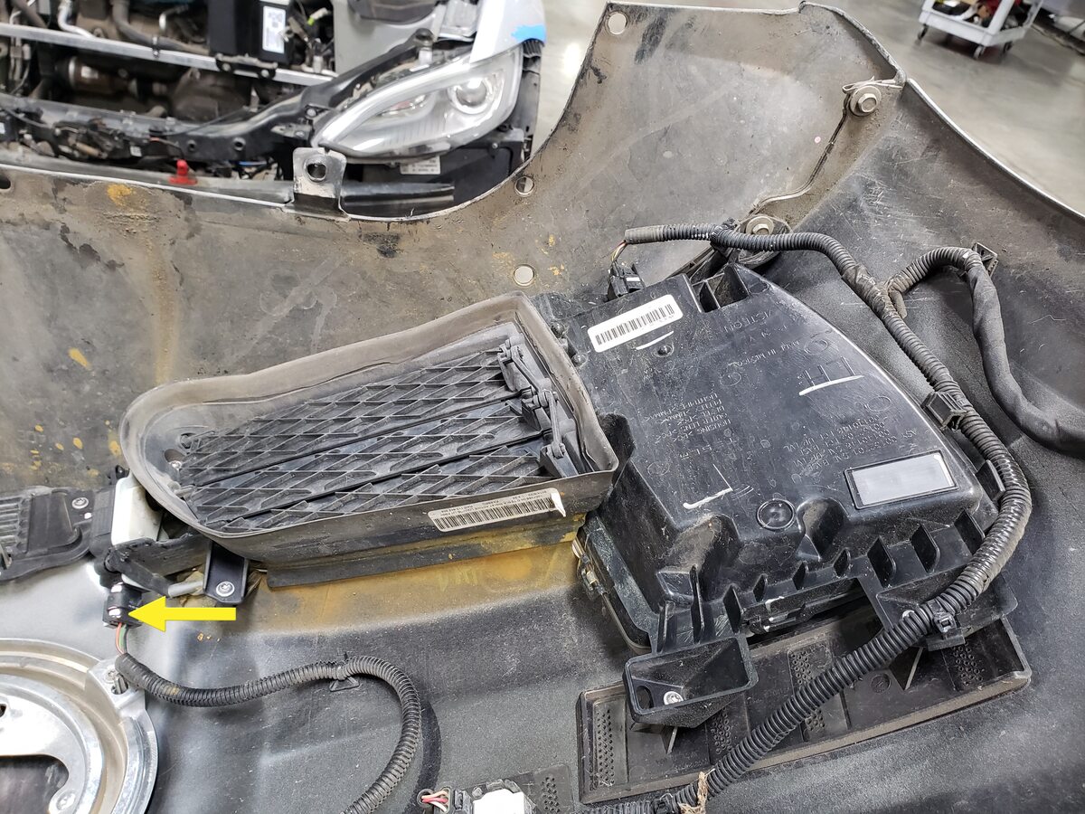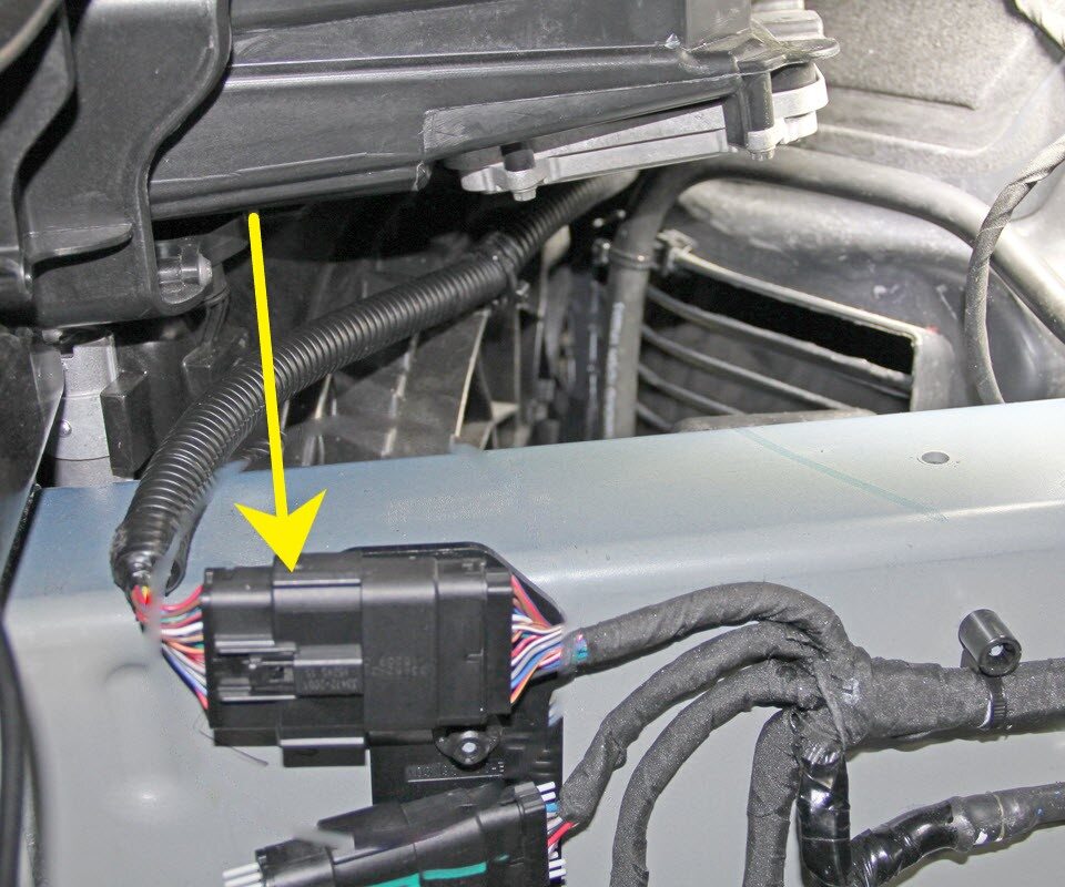 - Disconnect the fascia harness connector and release the clip that secures the fascia harness to the front fascia carrier.