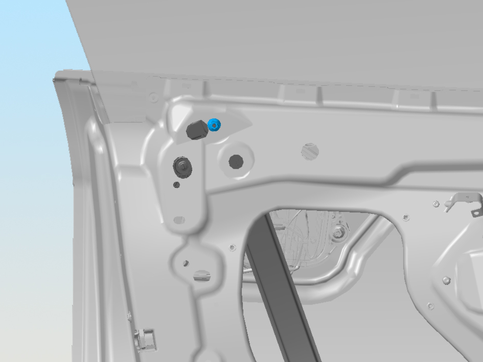 - Remove the upper rear nut that secures the regulator to the door (torque 10 Nm).