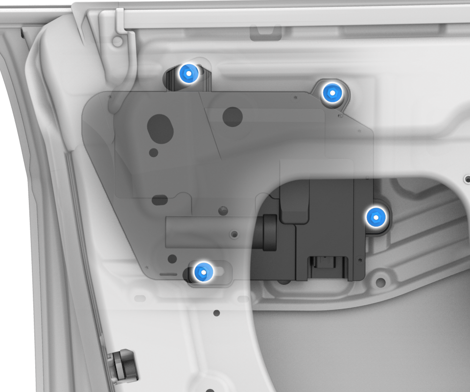 - Remove the nuts that attach the assembly to the door outer panel (torque 9 Nm).