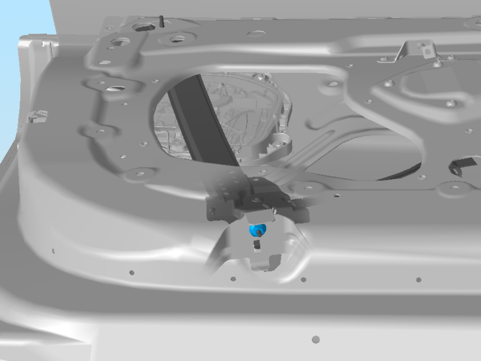- Remove the lower rear nut that secures the regulator to the door (torque 10 Nm).