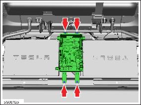 - Remove the bolts (x4) that secure the HV junction box (torque 5 Nm).