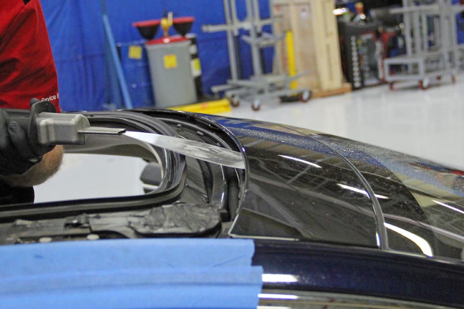 - Apply painter's tape to protect the external bodywork and internal trim adjacent to the front windshield.