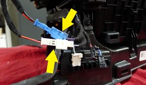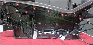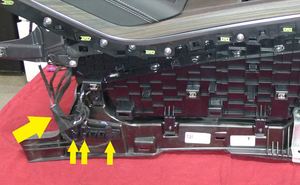 - Install the clips (x2) that attach the center console decor to the console assembly, connect the console connectors (x6), and then use felt tape to wrap the connectors (x2).