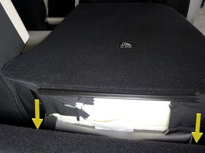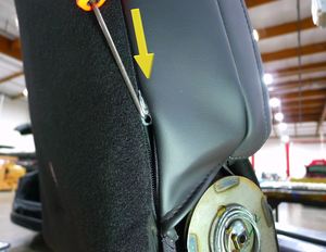 - Starting from the bottom, carefully pry the RH outer 2nd row escutcheon away from the RH 2nd row seat back to release the clips (x2), and then release the trim from the seat.