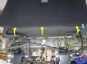 - Release the J-hook that attaches the RH 2nd row seat back upholstery to the seat, and then fold the upholstery down.