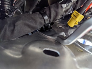 - Secure the clips (x3) that attach the electrical harnesses to the center spine closeout panel.