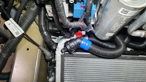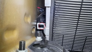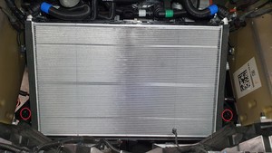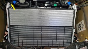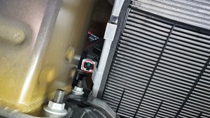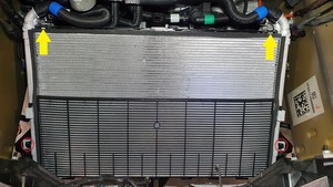 Position the 12mm radiator on the vehicle, and then install the locking clips (x2) that attach the 12mm radiator to the cooling fan module.
