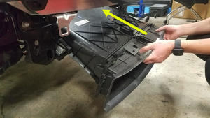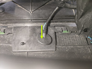 - Install the grommet that attaches the ambient air temperature sensor to the front end carrier, and then connect the sensor connector.