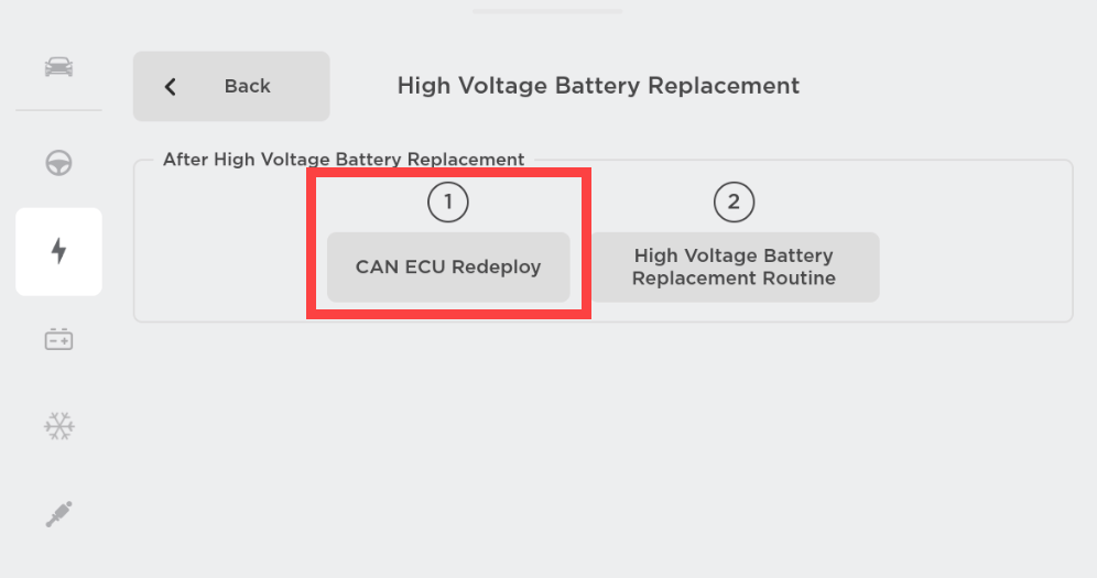 - Under After High Voltage Battery Replacement, touch CAN ECU Redeploy, and then in the window that opens, touch Run.