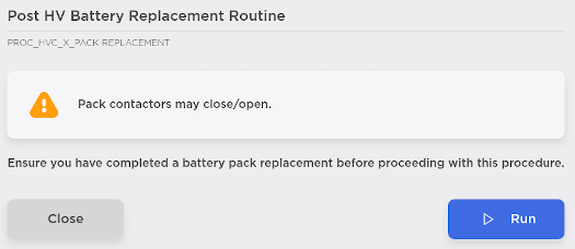 - Under After High Voltage Battery Replacement, touch High Voltage Battery Replacement Routine, and then in the window that opens, touch Run.