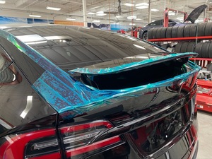 - Apply masking tape to the surrounding work area of the spoiler assembly to prevent damage to vehicle.