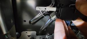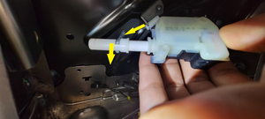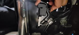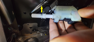 - Position the LH 3rd row headrest actuator on the vehicle, install the headrest release cable at the base of the actuator, and then slide the cable to the end of the actuator to lock the cable on the actuator.
