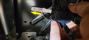 - Turn the LH 3rd row headrest actuator to gain access to the headrest release cable, and then slide the cable towards the base of the actuator.