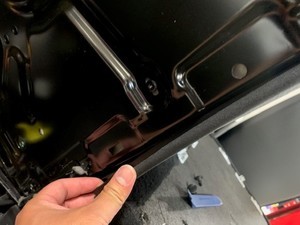 - Engage the tabs (x4), fir tree clips (x2), and J hook that attach the lower section of the LH 3rd row seat upholstery to the seat.