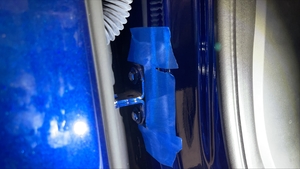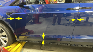 - Tape the LH lower front door hinge area on the body side to mark the hinge location.