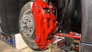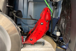 LH front brake caliper to the knuckle, and then carefully hang the caliper with an