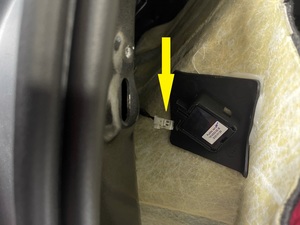 - Secure the charge port manual release cable onto the LH mid C-pillar zone bracket.