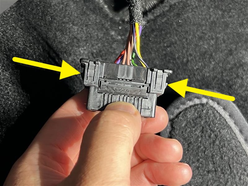 - Remove OBD2 connector from LH knee air bag assembly.