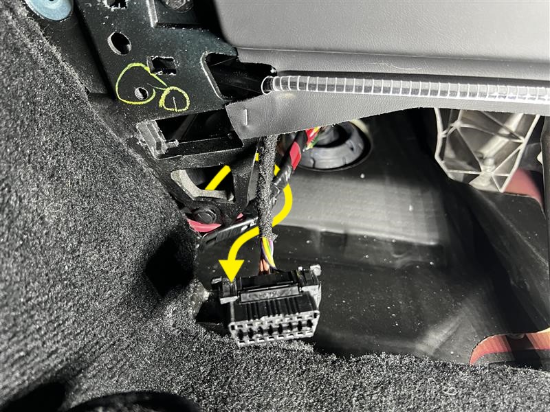 - Install OBD2 connector onto LH knee air bag assembly.