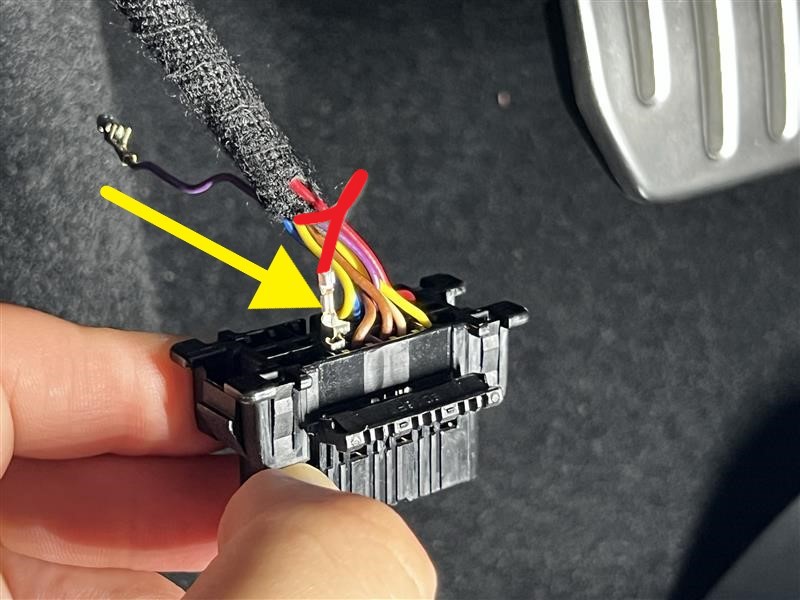- Remove Pin 3 (violet) wire terminal from OBD connector.