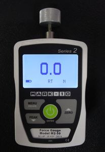 NoteAttach the 22 mm tip to the force gauge.NotePress @ 50N for 10 seconds.