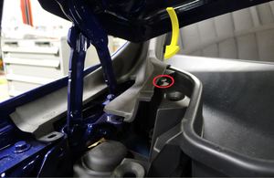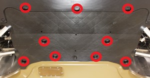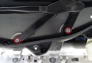 Apply Loctite 222 onto front aero shield bolts and install fasteners securing front