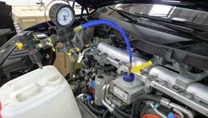 - Remove vacuum refill hose from refill cap on coolant bottle.