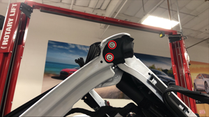 - Remove the masking tape from the LH rear door rear pinch sensor, position the sensor onto the door assembly, and then install the push clips (x7) that attach the sensor to the door assembly.