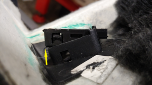 - Position the LH soft trim pocket bracket on the vehicle, and then install the push clip that attaches the bracket to the body.