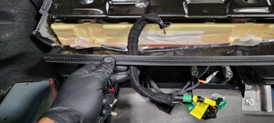 - Route the LH 3rd row seat connectors (x2) around the lower section of the upholstery, and then connect the connectors.