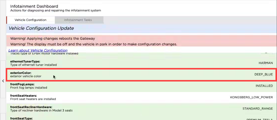 - The progress is shown, and after reboot, the window indicates a successful update to the vehicle configuration.