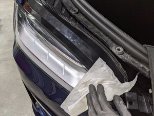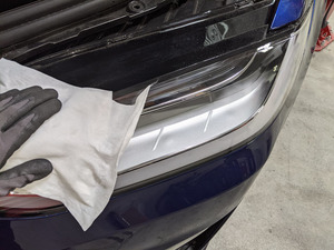 - Use a fender protector to completely cover the RH headlight.