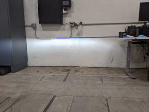 perpendicular to wall and align front fascia with tape on floor.
