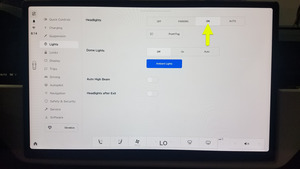 NoteVia center display > Controls > Lights > Headlights .