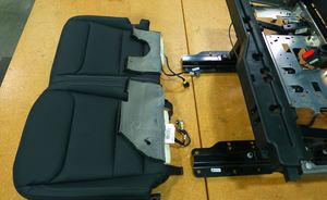 - Secure the black connectors (x2) to the LH 2nd row seat frame, and then connect the electrical connectors (x4).