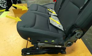 - Release the J-hooks (x11) that attach the underside of the LH 2nd row seat upholstery to the seat assembly.