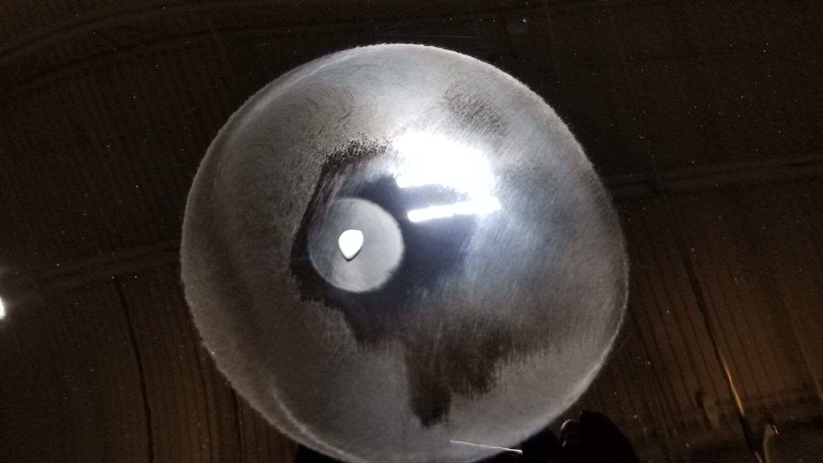 - Apply one 10 mm diameter dollop of cutting compound on the center of the sanding mark.