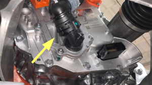 - Remove the plugs from the fittings, immediately connect the rear drive unit inverter inlet hose to the rear drive unit inverter, fasten the clip, and then perform a Push-Pull-Push check of the fitting.