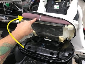 Install the tabs (x14) and J clips (x2) that attach the lower cushion upholstery to