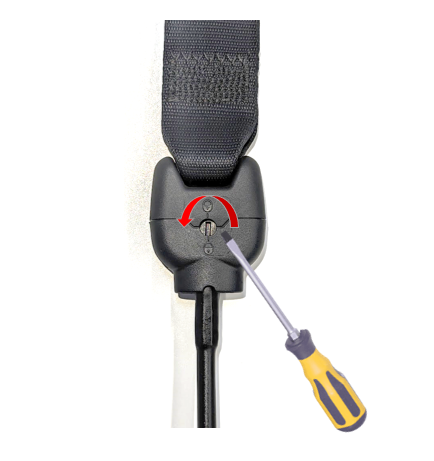 rotate the lock mechanism on the front seat belt linkage counterclockwise to