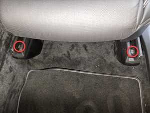 - Position the 1st row LH seat to gain access to the underside of the seat.