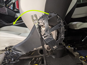 Tip: Release the front clips first, and then clear the rear tabs and rotate the trim away from the seat frame.