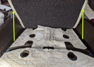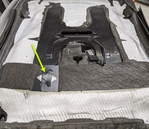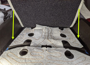 - Use diagonal cutters to cut and remove the center hog rings (x2) that attach the driver seat cushion trim to the foam pad.